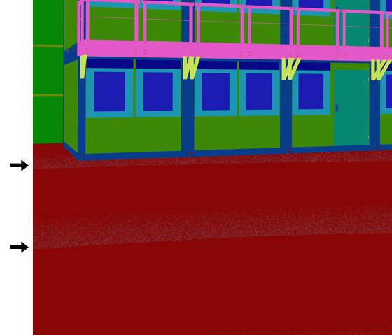 Olyan dologba futottam, amit még nem láttam. A csatolt képen a nyilak magasságában fut két vonal... ahogy látszik is, ott röcögősebb rgb pass-ben is az anyag (sima műgyanta padló akar lenni). Szóval vajon mi okozhatja v-rayben ezt a csíkozódást? Az egész padló egy nagy poligon egyébként és nem használok textúrát rajta.