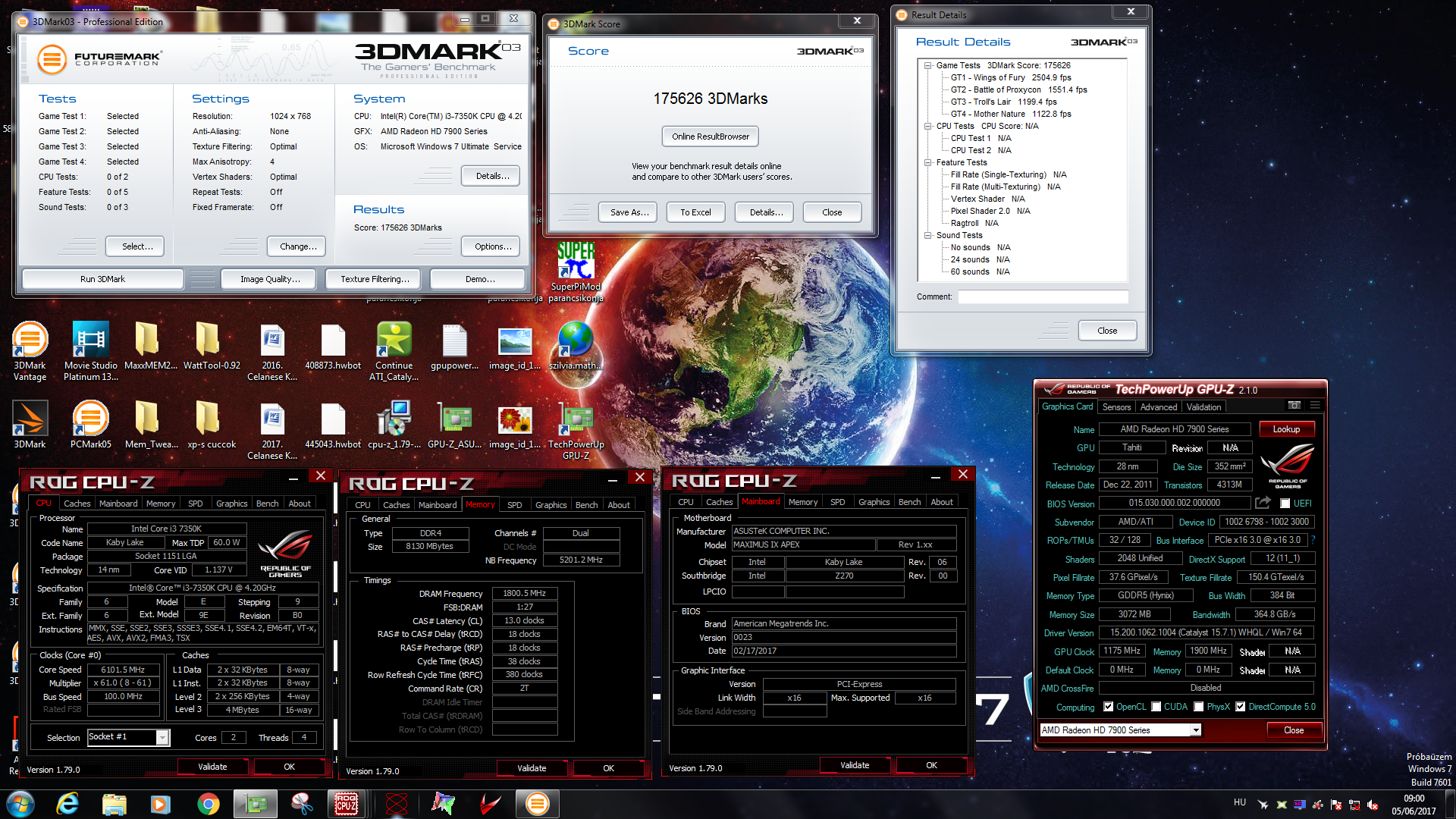 I3 7350K@6100 LN2 MSI L. BE HD7970 gyári hűtés.