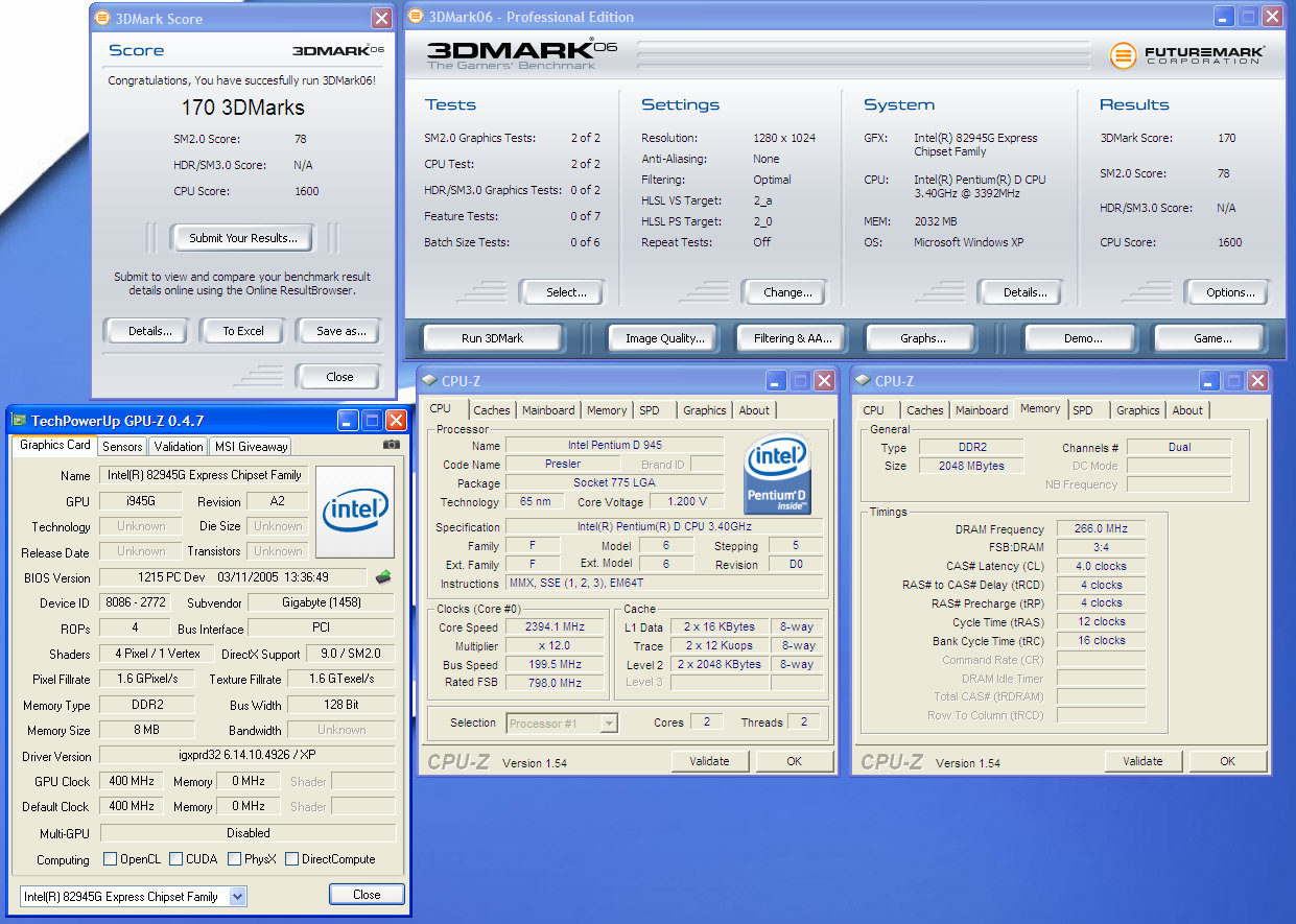 Ma takarítás céljából szétkaptam egy kicsit a gépet, és összerakáskor gondolkodtam, hogy az alaplapon lévő integrált GMA950-est még nem teszteltem. Kíváncsi voltam, hogy mire képes. Leszedtem a Catalystot, kivettem a Radeont, és felraktam a GMA driverét. Meg is lett az eredmény. Csak egy kis érdekesség: