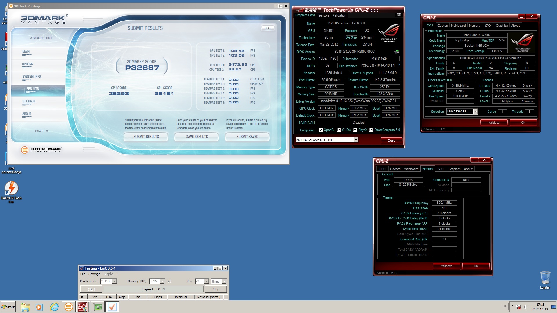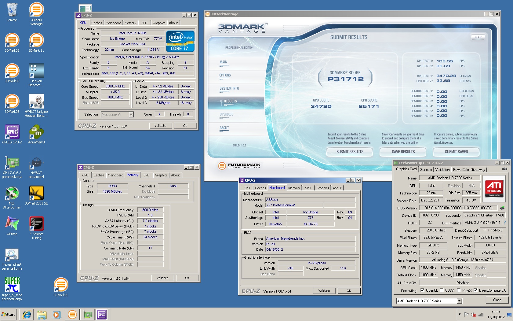 Intel i7-3770K @ 3,5GHz stock @ stock cooler