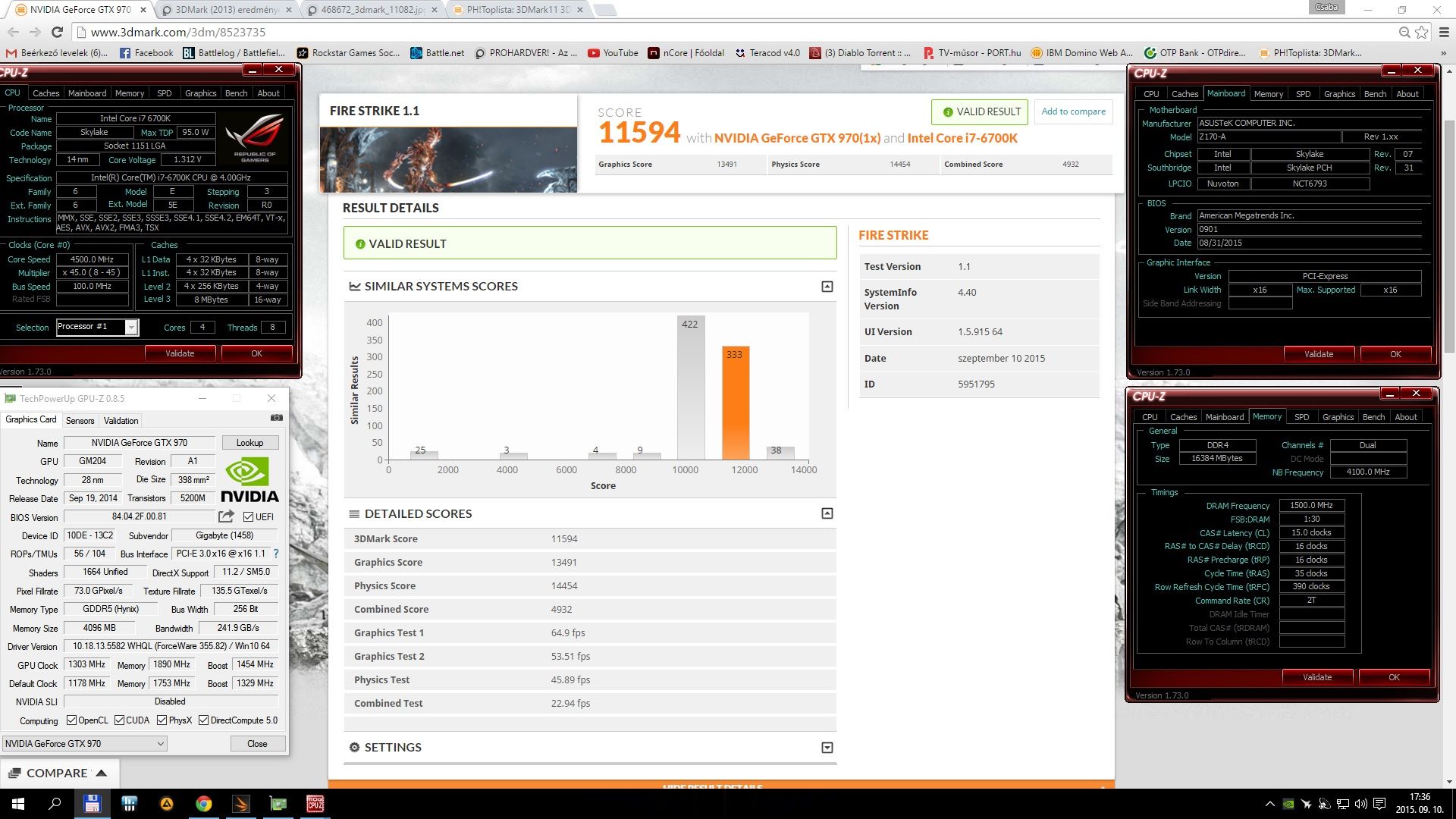 A listához kell a következő: Benchmark részeredményei, CPU-z CPU fül, CPU-z Memory fül, GPU-z Graphics card fül! Ezen kívül driver verzió, CPU órajele, VGA gyártója a hozzászólásba, amennyiben a képről nem derül ki.