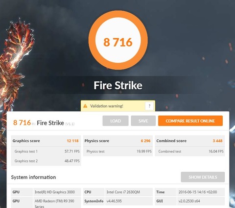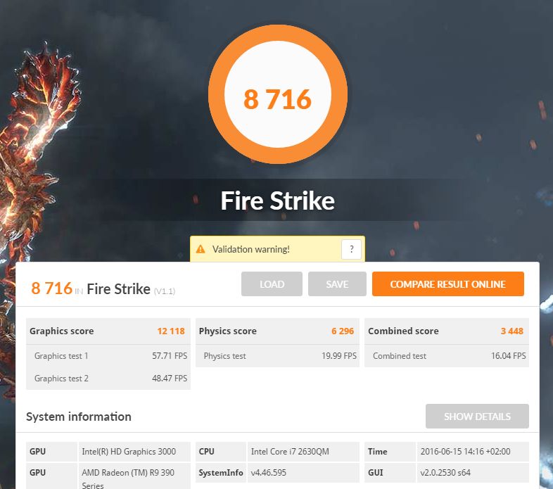Egy notebook eGPU-s eredmény: 2630qm, ASUS STRIX R9 390X @ x1.2 mpcie [LINK]