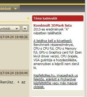 A listához kell a következő: Benchmark részeredményei, CPU-z CPU fül, CPU-z Memory fül, GPU-z Graphics card fül! Ezen kívül driver verzió, CPU órajele, VGA gyártója a hozzászólásba, amennyiben a képről nem derül ki.