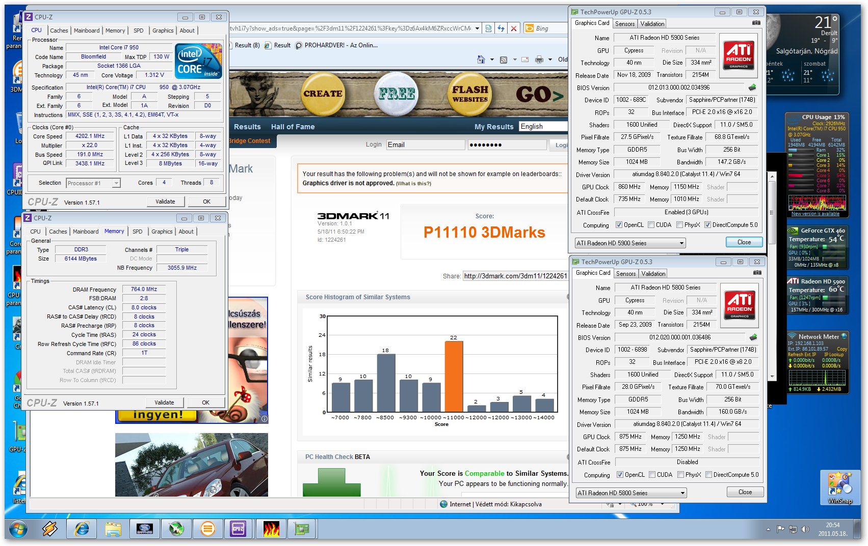 A Guru3D 6990 CF teszt alapján a Vantage "normális érték", hacsak nem a proci órajel különbségem okozza ezt a pontszám különbséget.[Guru3D Vantage]