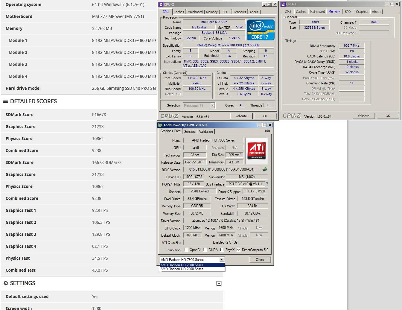 Screenshot készítése, melyen látszik az eredmény, két Cpu-z ablak, egyikben a processzor, másikban a memória (SPD és alaplap fül nem kell) és egy Gpu-z ablak. A shot-nál szintén látszódnia kell az összes részeredménynek! Pl.:1. Ehhez Advanced/Professional Edition szükséges vagy olyan Basic Edition, ahol a 3dmark.com-ra linkelt eredménynél látszik az összes részeredmény! -