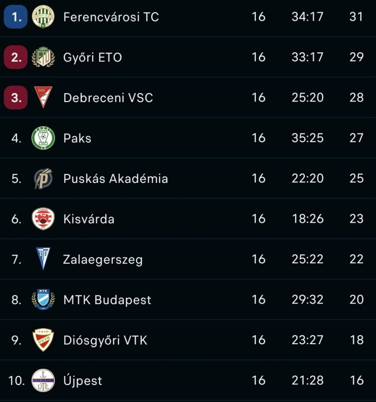 Mintha egy MB1 Pentek Esti Foci statisztikait latnam.