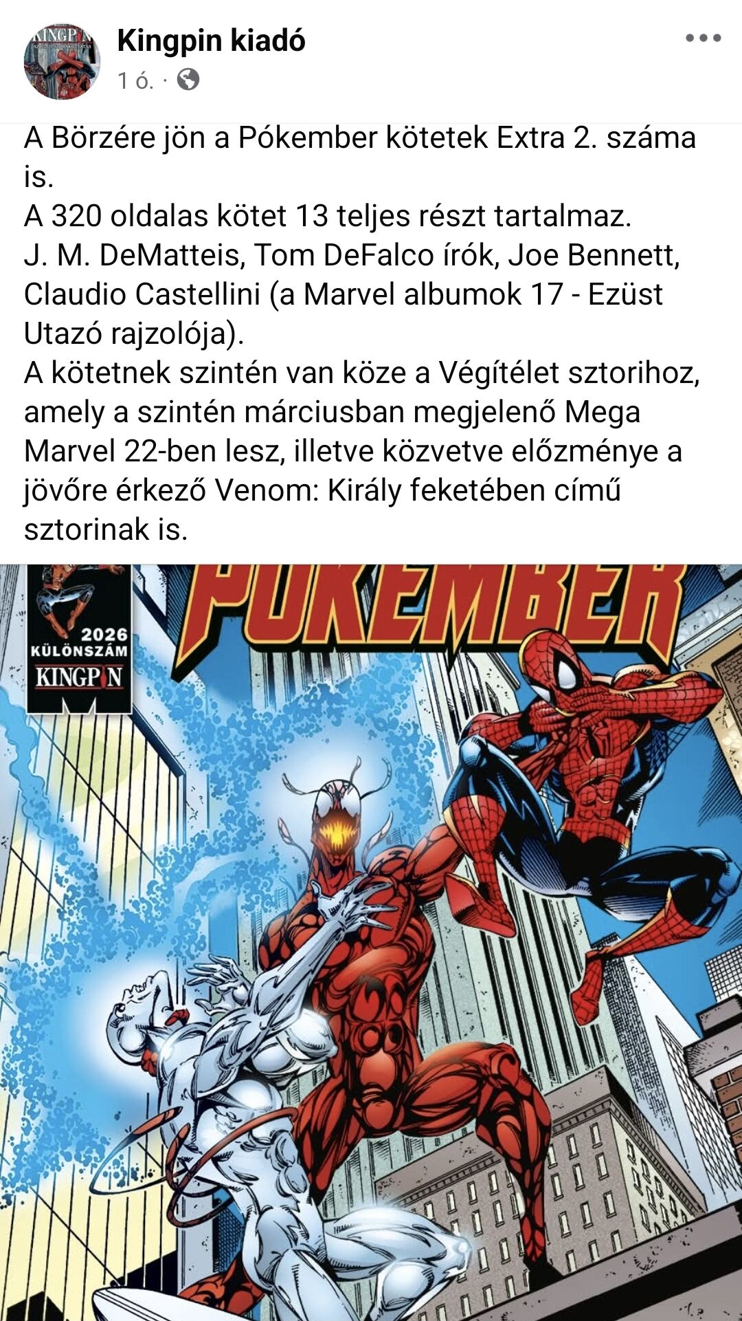 szerk.: az is kiderült, hogy a ke2 a ki nem adott ultimate póki lesz (azt a marvel is máshogy számozta), a gerincen külön számozva, a harmadik meg valami más. Tervben van a teljes ultimate pókember kiadás, a MM is beleértve. Illetve ebben a sorban nem csak Marvel kiadvány lesz, azért lett Kingpin Extra.