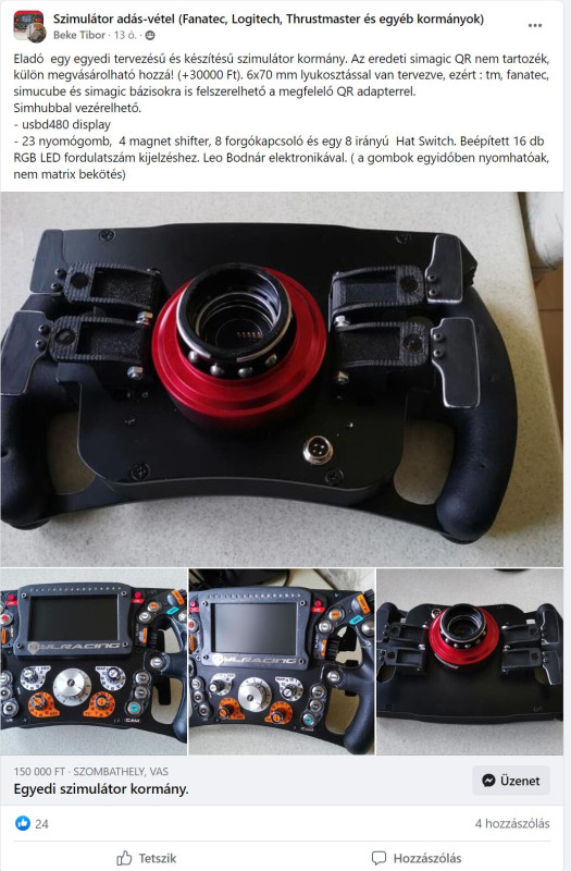 Filóztam a Mclaren GT3-as kormányon, de inkább most legyen egy univerzálisabb darab, a használhatóság szempontjából.