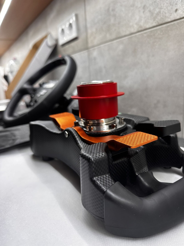 Az járt hozzá, és ez így jó is, mert azt nem használom, az átalakító kiváltja, a pinekkel együtt, és a QR helyett van rajta egy szépen megmunkált fém henger, benne egy elektronikával, USB kábel kivezetéssel, 6x70mm lyukosztással, amire rá lehet tenni a tetszőleges (SC, VRS, Simagic, Moza, Cammus, Asetek stb) QR-t. Így hibátlan