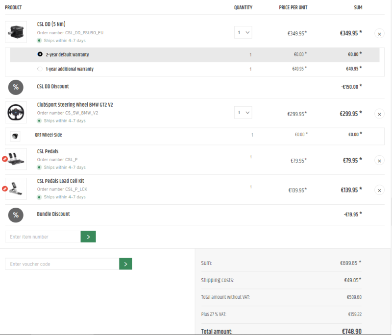 Rendeljek egy 5Nm bázis+ CSL pedál +BMW GT2 V2 kombót a Fanatec honlapról? Így a bázist 200 euróért meg tudnám venni, amit bontatlanul szerintem 115-120e körül el lehet adni (valóban el lehet ennyiért?).