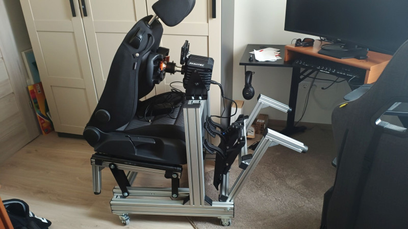 CSW V2.5-tel, majd CSL DD 8Nm-rel használtam WheelStand Pro Deluxe-ot. Nem egy atomstabil rig, de ha a kormányt nem húzod/tolod, csak tekergeted akkor aránylag nagy FFB-nél is helyén marad. Egy mozdulattal össze lehet hajtani. Fiam most is azt használja CSL DD 8Nm-rel. Vezetés közben a gurulós széke meg oda van kötve egy hevederrel. Ha nincs hely normális rigre, akkor teljesen jó szükségmegoldás.