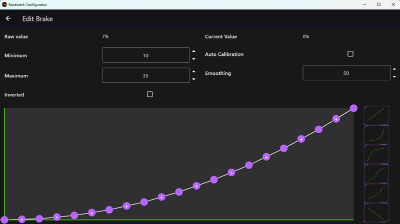 Van auto/manulális kalibrálás, pár előre létrehozott jelleggörbe, meg szabadon választható és "smoothing" is állítható egészen a szűretlentől az enyhe szűrésen keresztül az aránylag lomhán lengéscsillapítottig: