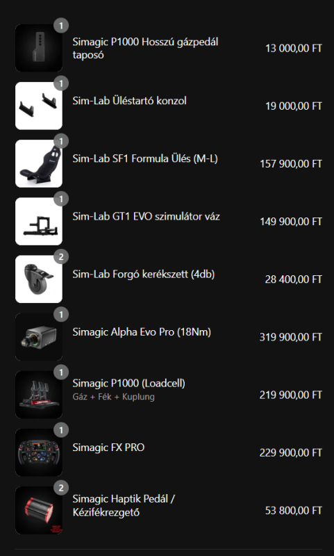 A Paza Tech oldalán holnaptól nagyjából a Simracingzone.pl oldallal azonos akciós árak lesznek. Mármint amiket én figyelek. Azt lehet tudni esetleg, - mert nem láttam -, hogy a simagic bundle ajánlatok is megjelennek náluk?