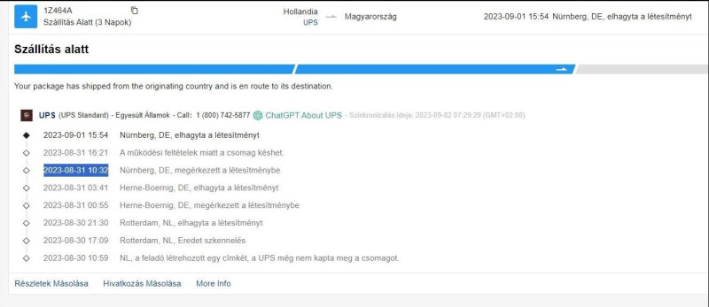 Mai helyzet...3 csomag 14:10-kor beérkezett a hazai raktárba.