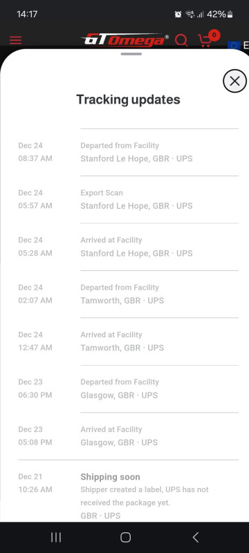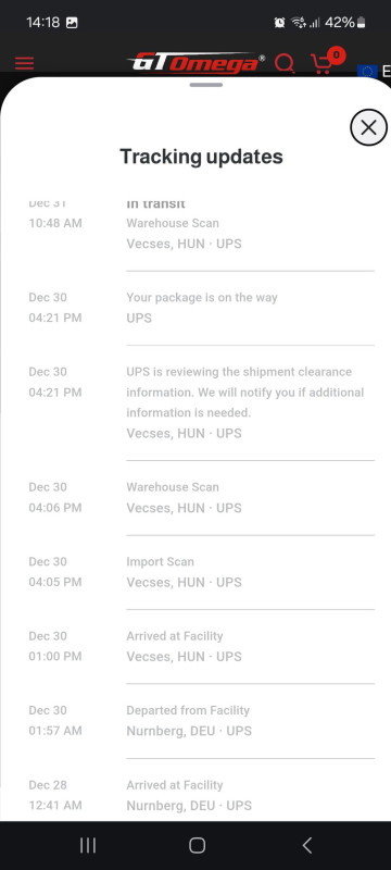 Bocsánat a hosszú posztért, végre megjött a rig 1 hét csúszás után. Tegnap ment egy mail a jupéeszhez, hogy vadafakk, érdekes ma kihozták. Se telefon se e-mailes értesítés. Annyira r*tek cég. Képeken látszik az út, dec.30-án Vecsésen volt....