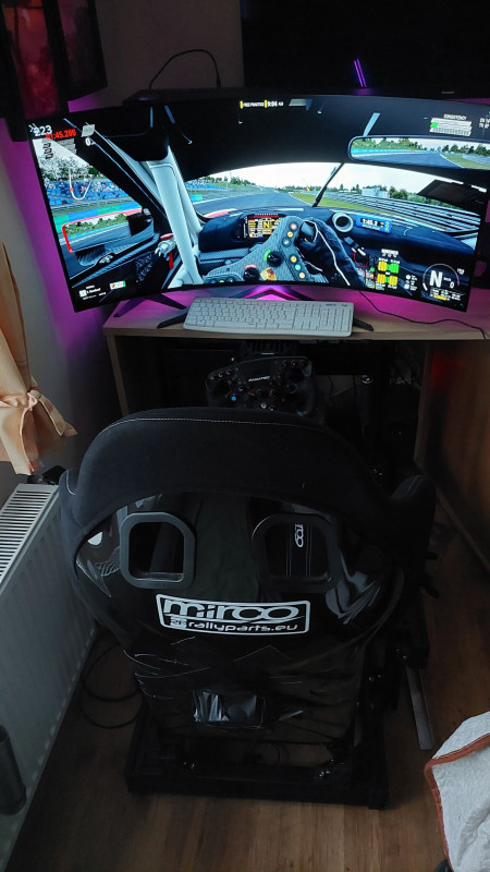 Lesz majd playseatem eladó ott mondjuk csak lehajtható az ülés, viszont én úgy használom, hogy be van tolva az íróasztal alá,(kevés helyet foglal így) valamint loadcellbarátra tuningoltam a pedáltartóját, így nem nyeklik mikor fékezek, hanem helyén marad.
