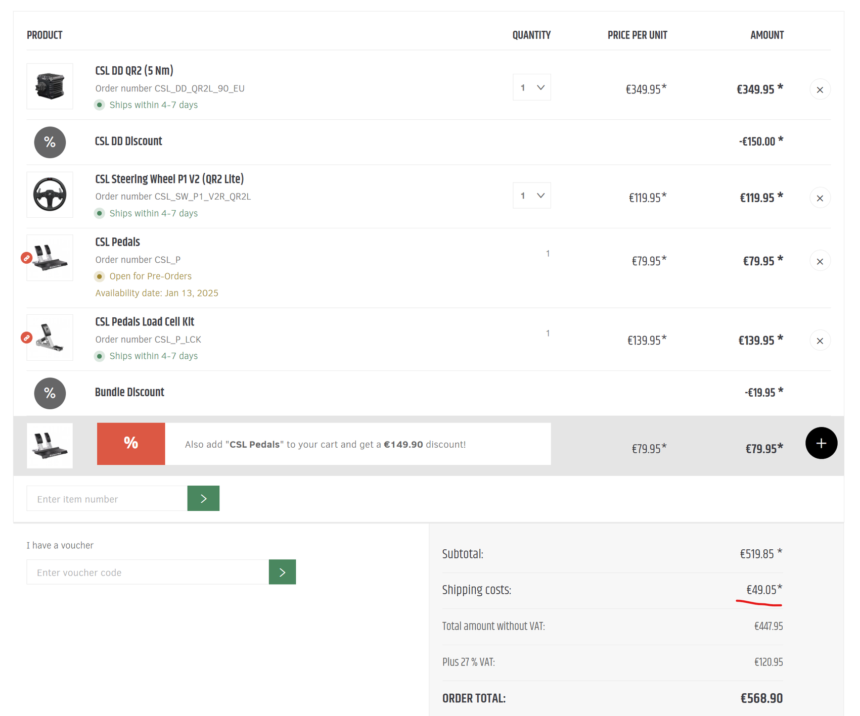 Tervek szerint rendelnék egy Fanatec csl dd bundle-t, valószinűleg tudom a választ de nincs fanatecnél elérhető free shipping kupon vagy hasonló?