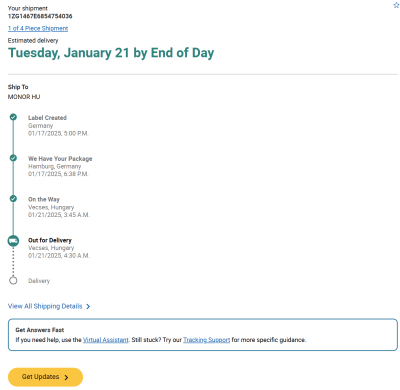 Ma jön be a Fanatec rendelésem a jelzés szerint ami azért elég durva mert tegnap délután még németben volt. Viszont persze hogy nem tudok itthon lenni ma és az UPS oldalán nem lehet átrakni a delivery-t más címre vagy napra fanatec rendelés esetén? Más UPS rendelésnél ezt megtudtam tenni de itt nem enged semmit sem.