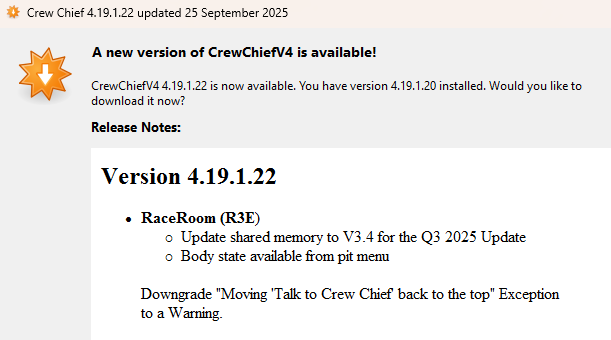 sajnos megoldást nem tudok, és az okot sem, de kb fél éve nem mentem egy métert se raceroomal, tegnap lefrissült 50,6GB, lefrissült a crew chief, kézzel kellett a simhubot mert nem ajánlotta fel, majd elindítottam a raceroomot