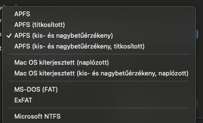Jó estét! Big Sur 11.4 van fent ,és megkérdezném,hogy mondjuk egy külső vinyót ha csak Macen szeretném használni akkor mire formázam? Mert eddig AFPS re tudtam de most már csak a Mac OS jelenik meg. Ahogy olvastam nem ez az újabb ... Vagy rosszul tudom? NFTS for MAc is csak azokat hozza fel. EXFAT NTFS Mac OS