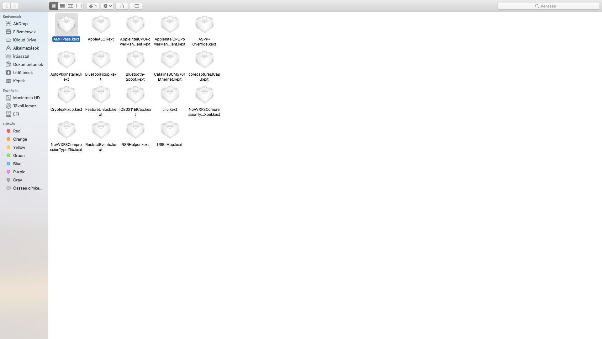 Marmint, a hacklihoz valo bootloaderrel, milyen celt akartal megoldani?Ezek a kextek, amiket screenshotoltal, ezek hol vannak? Ezek nem gyariak. A Clovert valami telepitovel raktad fel? Nem az hanyta fel ezeket a hulyesegeket?