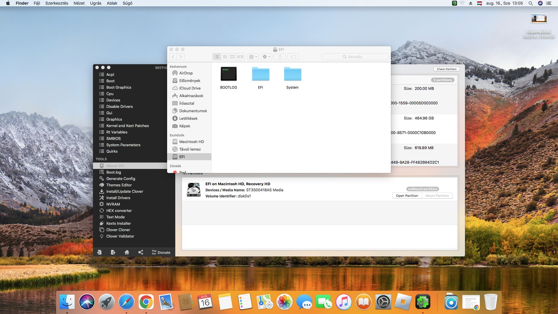A Clovert azért tettem fel,hogy megnézzem,mit tartalmaz az EFI mappa.Rendes Apple-től letöltött USB-s telepítőm van.Nem hinném,hogy a Clover tette fel,de erről érdemben tlac forumtárs tudna többet mondani.Lényeg,hogy eredeti High Sierra van a gépen,eredeti telepítő dmg-vel.