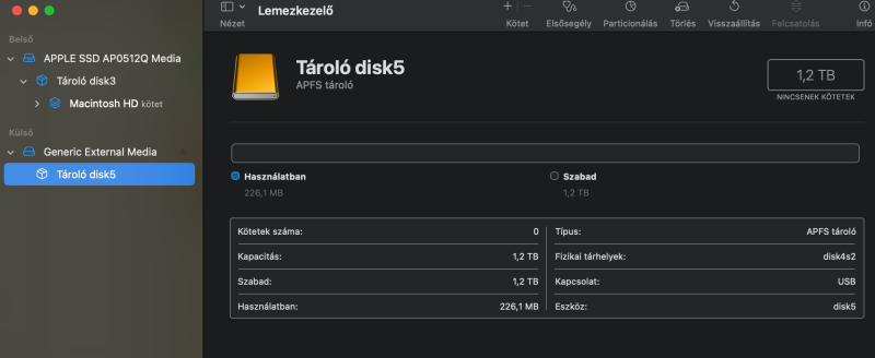 Adott egy HDD amit egy synology NAS-ból vettem ki. Szeretném partícionálni és formálni, de a disk utility csak egy részét látja. Milyen más program van Sonomára, vagy mit kell beállítanom, hogy kezelje a lemezt?