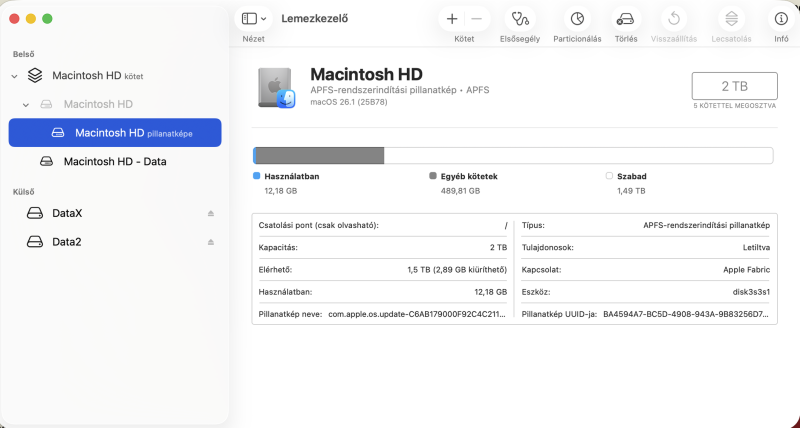 Ujraraktam az OS26-ot es TM mentesbol visszaalltam. A visszaallitas 99%-ban sikerult. 1-2 beallitast nem hozott at, amit nem ertek, mert ha mar az etc menti, abban ott van elvben minden. De osszesegeben sikerult a muvelet. Viszont a recovery menut kicsit elbaxtak, mert a bill kezeles nem jo. Es hiaba probaltam billentyuzetkiosztast valtani, nem csinalt semmit.