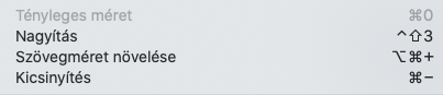 Valóban, viszont asztali gépen itt a numpad, és azon a - és + gomb. A numpados - működik, de a +-ra tojik. Ami logikus is, mert nem "cmd +" van leprogramozva, hanem "shift ctrl 3". Ez azt jelentené, hogy egy angol nyelvű rendszeren más a nagyítás billentyű kódja?