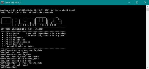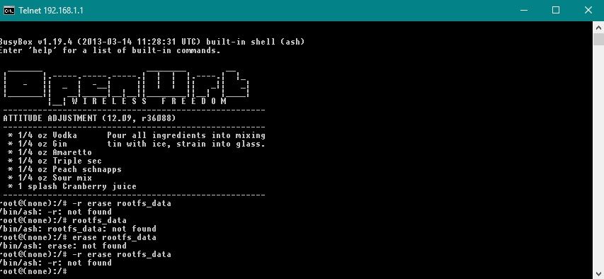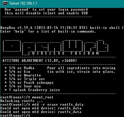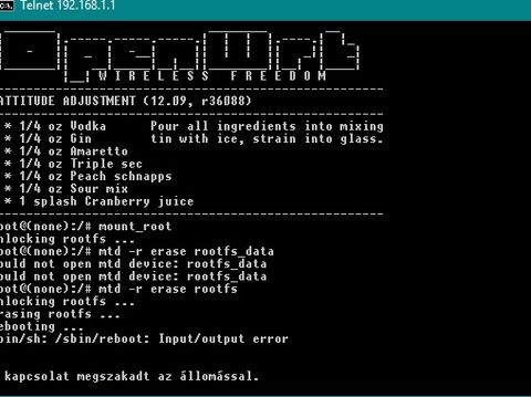 mtd -r erase rootfs_dataparancsot. Ez mindent alapra állít és újraindul a router.
