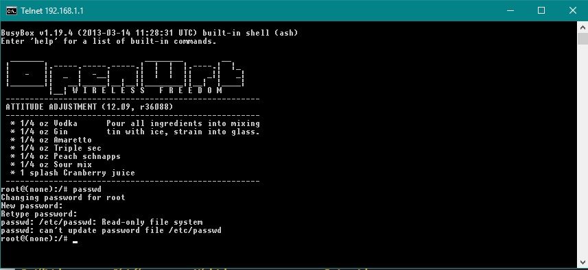 Ilyenkor failsafe üzemmódban vagy, nem csatolja fel a jffs2 partíciót, így semmit nem tudsz módosítani (azaz jelszót sem tudsz beállítani). Az AA-nak elvileg mennie kellene a 740N v4-en, úgyhogy lehet, hogy csak config megtartással frissítettél, ami nem volt jó ötlet. Próbáld meg, hogy ilyenkor kiadod az