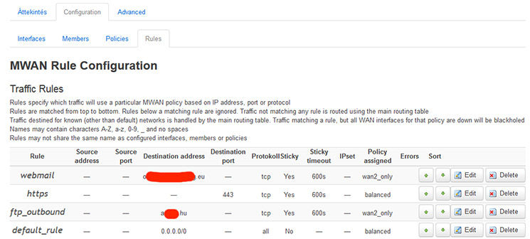 Mwan3 esetén a policies-nél be lehet állítani, hogy feltöltéshez csak az egyik kapcsoalatot használja?