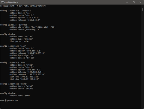 VirtualBox-ban inditott OpenWrt 21.02 ezt adja:
