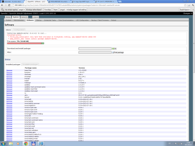 LuCi-ból akartam frissíteni vargalex csomagjáról a sajátomra. Le OK-éztam, hogy jó a checksum, mehet a menet, aztán látszólag semmi sem történt úgy 5 percig. Akkor kapott egy ki-be kapcsolást a főkapcsolóval, ami után nagyon hamar kivillan minden LED, és ennyi. Nem oszt IP az ethernet portra kötött gépre, és fix IP mellett sem nyitható sem SSL, sem Telnet kapcsolat. Vagyis szépen hazavágta.Ezt azért reméltem, hogy nem lehetséges hogy hibaüzenet nélkül elkészül a képfile, de hazavágja a routert.