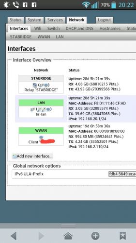 Kb. az az eset, hogy a wan (wwan) felől lehessen elérni úgy a routert, mintha lanról tenném.Relayd már felkerült, a leírás azt mondja, hogy a stabridge IP-jét állítsam be arra, amit a wifi is kap; na akkor ugyanúgy nem működik, mint előtte