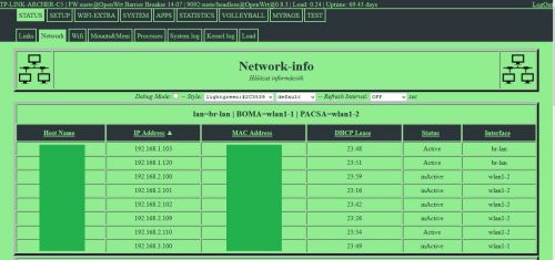 C5 a főrouter, 3 wifihálózatot kezel, amiből 2 vendég (2.1/3.1). A vendégekre kapcsolódik 2 repeater, mindegyik relayd üzemmódban. Így minden monitorozható a C5-ön:Ezt be tudnád állítani Gargoyle webfelületen?