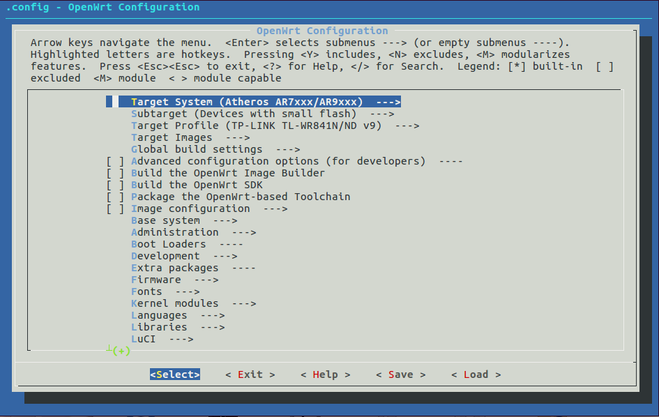 Megint bepróbálkozom, hátha. Szeretném a segítségeteket kérni, hogy mit csillagozzak be az alábbi menuconfigon, ha szeretnék egy saját img-t készíteni egy wr841n v9-es routerre. Valahogy nem érzem ezt a forgatást, a make lefut ugyan, de egy árva factory-, vagy sysupgrade bin nem születik belőle. A routerre egy nagyon minimál img-t szeretnék , mindösszesen egy openvpn szervert szeretnék futtatni rajta. Az ehhez szükséges csomagokon, illetve egy webes felületen kívűl semmire nincs szükségem, se tűzfal, se upnp, még a wireless része sem kell, mert switch-ként lenne a hálózatba illesztve. A dhcp, dnsmasq és egyébb ilyesmi is csak akkor kell, ha a vpn megkívánja. Eddig 3 buildet tettem fel rá, de kettőben nem maradt hely a konfolásra, egy meg nem akarja az igazságot.