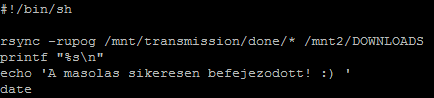 Hogyan lehetne az alábbi kis scriptet crontab-al naponta egyszer (meghatározott időben) lefuttatni úgy, hogy egy log fájlba kerüljön a szöveg része (A masolas sikeresen befejezodott!) az aktualis datummal egyutt.Illetve, ezt még meg is tudom csinálni, csak a logban egymás mellé, egy sorba kerül a szöveg.