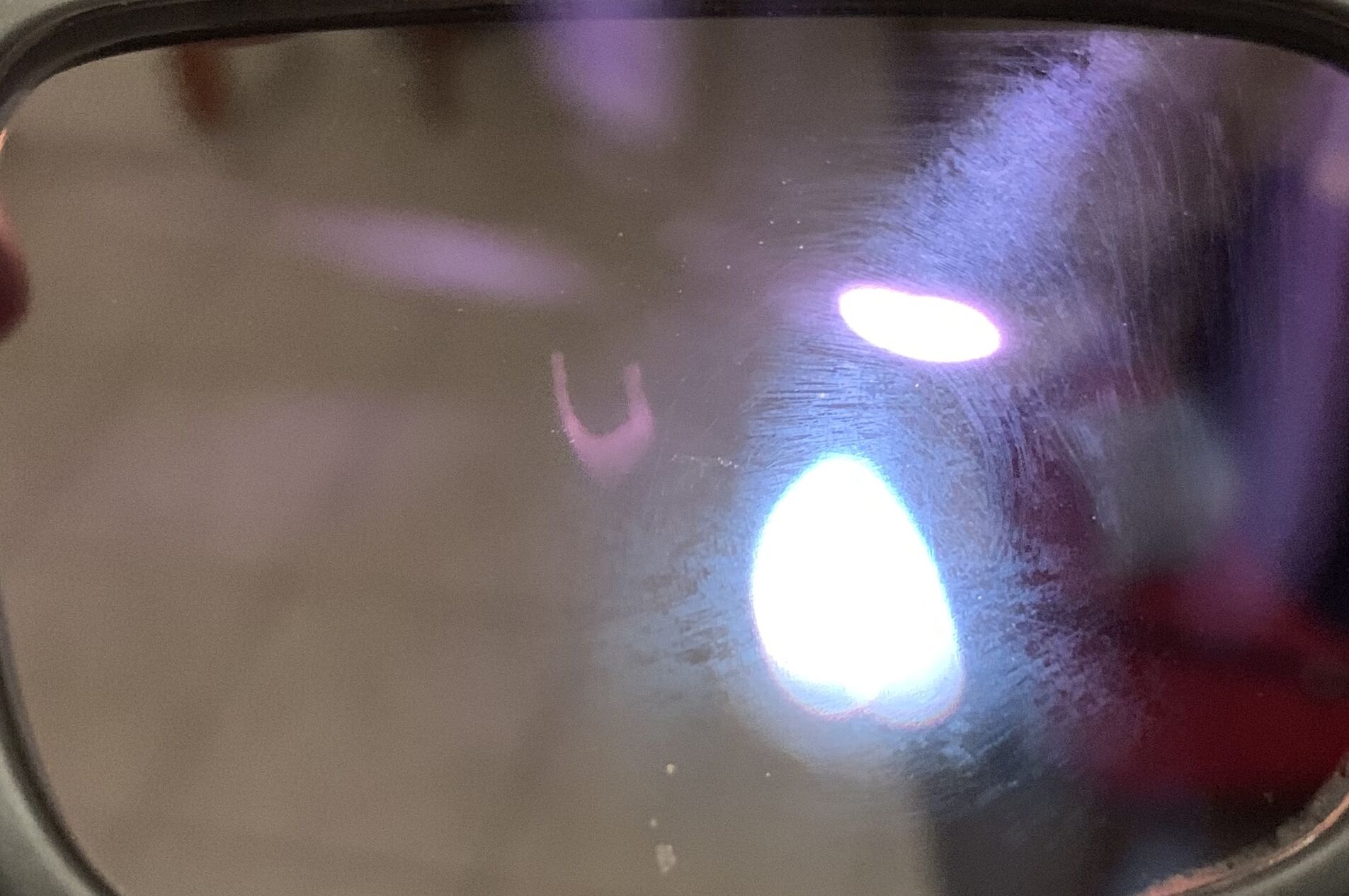 Sziasztok. Nyar elejen csinaltattam uj szemuveget, eveken keresztul Zeiss lencseket hasznaltam. A tavalyi koltozesem utan viszont a mostani optikaban Hoya Blue Controlosra esett a valasztas. Semmi gond nem volt vele, de par napja vettem eszre, hogy fentrol beeso fenynel tukrozodik. Sima vizzel oblitettem mindig es a hozzaadott Hoya torlokendovel toroltem. Ma megneztem fenynel es a kepen lathato hiba mindketto lencsen lathato. Ez mitol lehet? Erre vajon kiterjedhet a garancia?! (Igen, tudom, vigyem vissza. Vissza is fogom, csak tajekozodom, hatha volt valakinek hasonlo) egyebkent ugyan ugy hasznaltam, mint az elozo evekben a Zeisst.