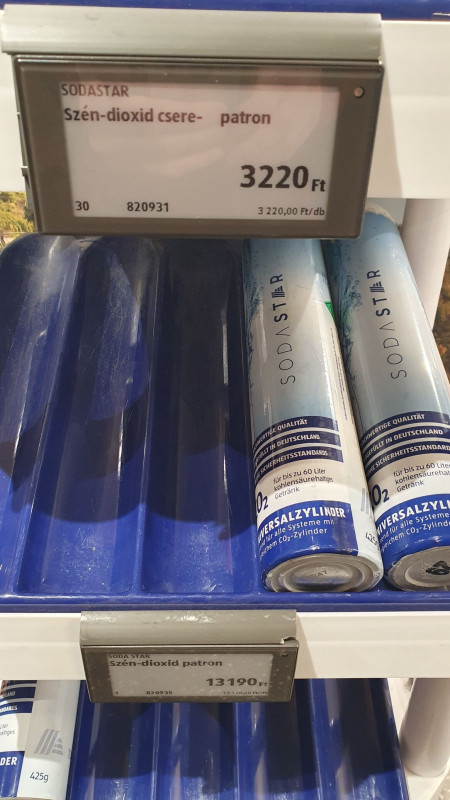 Ebben az áremelésben 2 dolog nagyon dühítő: 1) Hogy egy év alatt 40% emelés. 2) A szódagép árát is bele kell venni. Ez a második a trükkösebb. Ha 25 ezernek veszed a gép árát, és 70 forintnak a bolti bubisvíz literjét, az 54 forintos otthoni vízzel 25 CO2 palack-csere kell az Aldiban, hogy végre behozd a bolti árat, és akkor még mindig csak ugyanannyi. Ez azt jelenti, hogy a 25 ezren felül még 80 ezret kell eltapsolni, hogy pariban legyen az otthoni szóda a boltival. Ez még nálunk is (akik extrém sokat iszunk) kb 7 hónap lenne, a havi 1 palackot cserélőknél 2 év. És még csak annyi történt, hogy elérted a bolti árat, ledolgoztál 16 forintot literenként, ráköltöttél több, mint 100 ezret. Ha pedig picikét olcsóbbat akarsz a boltinál, az újabb 80 ezredbe fog kerülni (újabb 7 hónap nálunk, másnál újabb 2 év), de közben - hoppá! - megint megemelték 40%-kal (vagy 80-nal) a palackcserét, sebaj, még 1-2 év...