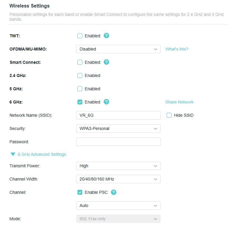 Sziszifeca még egy tipp neked: Tiltsd le a fenébe a 2.4 Ghz és 5Ghz WiFi hálózatokat az AXE75-ön. Nem kell, hogy foglalják a channeleket, pláne ha csak a 6Ghz-est használod, csak VR-ra. Ezt a mobilappon keresztül nem tudod, be kell lépned a PC-n a routerre böngészőből. Az ip címét megtudod nézni a mobilappból és azt kell beírni, működik akkor is ha már AP módban van az AXE75.