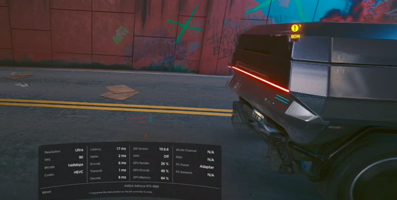 De HMD-ben is minden körül ott a reprojection glória. Csináltam internal videót arról ami a HMD-ben van, de 30fps-t rögzit igy nem látszik annyira. Igy videón a legjobban a fegyveren és a karakter kezén látszik, amikor aszfalt háttér előtt van.
