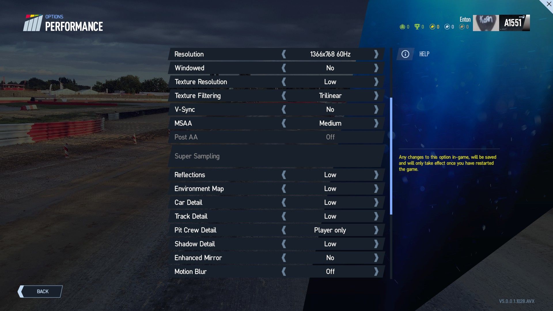track detial - low, (ha mediumra veszem néha néha beesik 85 re...és zavar engem személy szerint, mert érzem a képen)