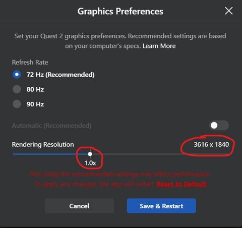 A megapixel szamok az egyik ami jol johet, de en inkabb arra gondoltam hogy valtoztattak a szamokon vagy hogy peldaul per pillanat mindent osszevontak egybe a Link-nel. Tehat mar nincs Performance/Balanced/Quality hanem van egy felbontas amirol elhatarozza hogy 1.0, nalam a Quest 1-el ez peldau a regebben Balanced-nak mondott 1808x2000 szemenkent. Az 1.1-es (valojaban 1.13-1.14) pedig a 2064x2272 ami regebben a Quality volt. Nem tudom a Ques 2-nel ezek hogy neznek ki mert nincs. A tablazatodban mi felel meg a Quest 2 felbontasoknak? MIlyen szorzok allithatok a csuszkaval?