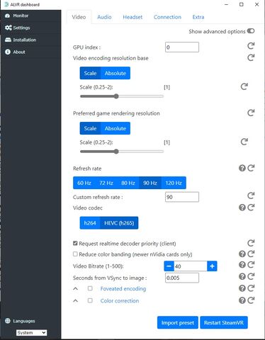 Hát igen, pedig én még nyomtam egy reset to default -ot is, hogy megjelenjen a 120Hz a menüben, de a rossz érték mégis bent maradt ami bekavart az AirLink-nek. Ma frissítettem az Oculus Tray Tool-t, na az egyből feldobta, hogy 0-ra állította az encode -t. Anno én is áttettem belül fix 10 -re amikor még rossz volt (az az átkapcsolás is beletelt vagy 10 percbe annyira szét volt esve), most már dynamicán van, de lehet én is beállítok neki valamit, majd nézem a diagramot SteamVR-be.