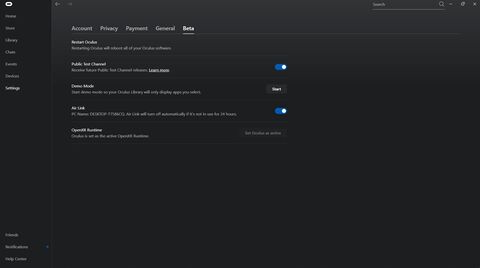 Pc-n kapcsold be újra az airlinket a settings beta fülön (amit a képen linkeltél ) mert minden Oculus softwre űjraindítás után automatikusan kikapcsol