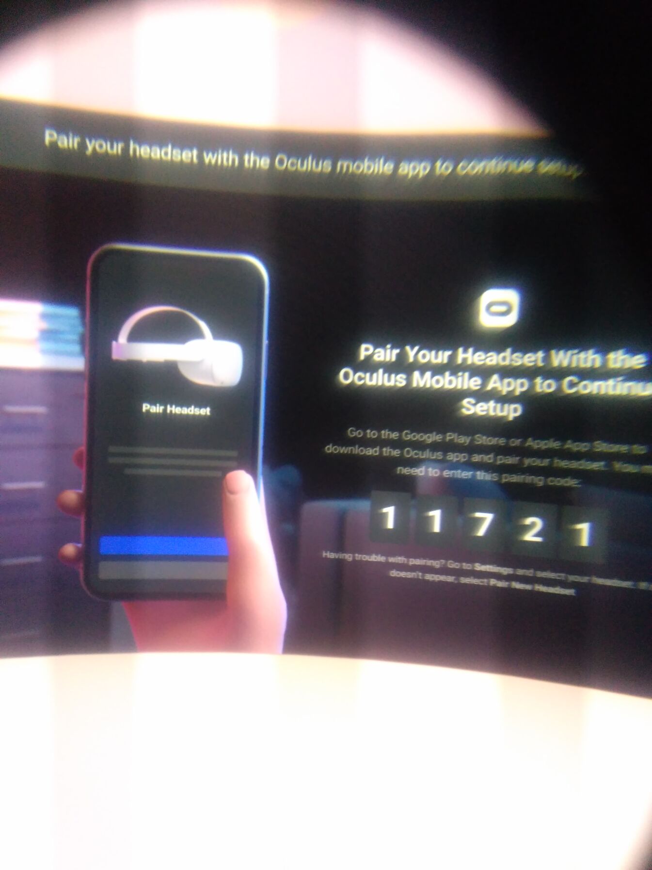 Az oculus appba (a telefonos) kell bírni a kódot amit a szemüvegben látsz... Ennyi... Nem kell buvolni a telefon BT részét... Csak kapcsold ki meg be...