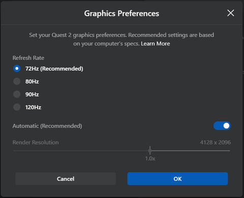 Illetve a szemüvegben amikor az oculus homeban vagy akkor a bal alul lévő ikonra kattintva tudod állítani az airlink ez... Rakd fixed 100-ra minimum....fixed!