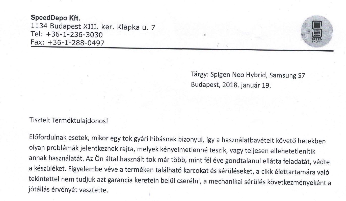 A lényeg a dologban,hogy az első mondatban elismeri a gyári hiba lehetőségét,de utána az 1év helyett csak punktum 6 hónapra redukálja a gyári szavatosságot önkéntes alapon.A tokon meg ott tört ketté a keret ahol egyértelműen gyárilag le van gyengítve vagyis a hangerőszabályzó helyén ahol kivágás van. A más jellegű sérülés rajta nem más mint külön tokban használva az ebből eredő festék lekopás.