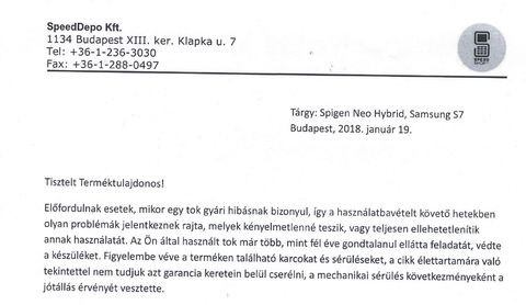 Mint olvasható a levélből nem tájékoztattak arról a jogaimról,hogy amennyiben nem értek vele egyet van lehetőségem továbbiakban a másik 6 hónapot hitelt érdemlegesen igazolnom,hogy semmiféle külső behatásnak nem tettem ki a tokot.
